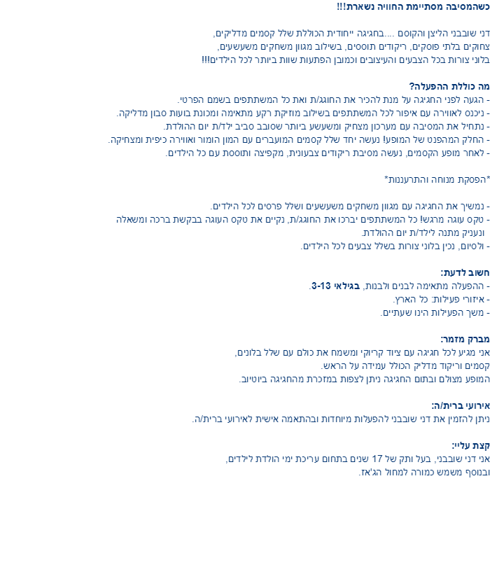 דני שובבני הליצן והקוסם - 073-7027562