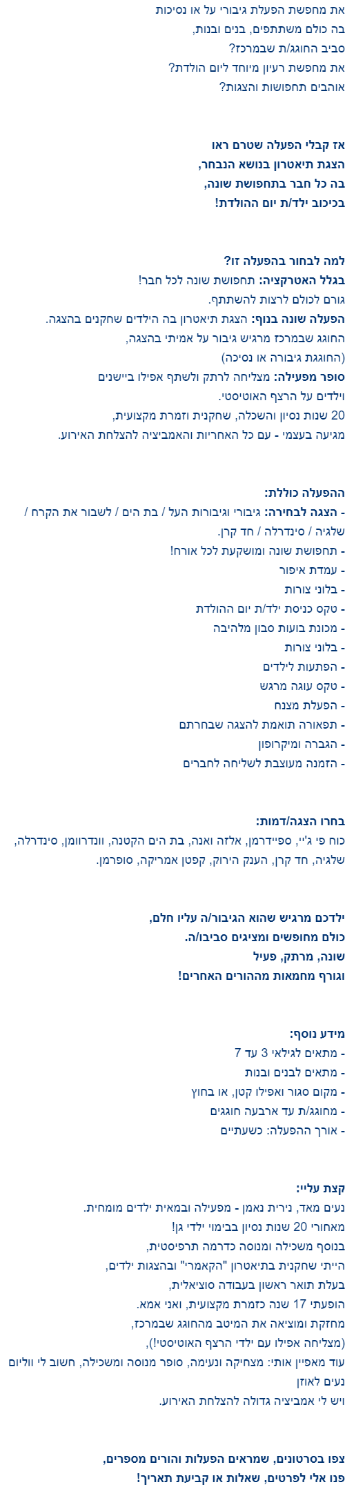 עולם הדמיון הוא אינסופי וכאן תוכלו לחוות אותו עם הפעלה ייחודית ויוצאת דופן
