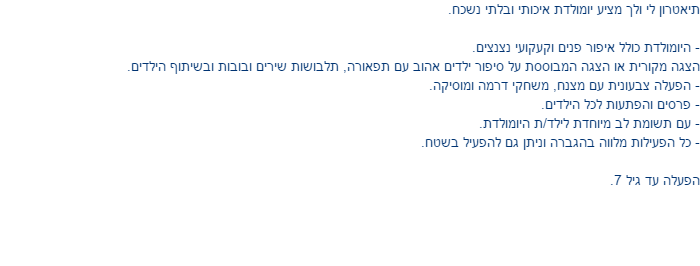 במחיר מצחיק הפעלה עוד יותר מצחיקה ומדליקה: ריקודים, משחקים, משימות, פרסים, בלונים ועוד.