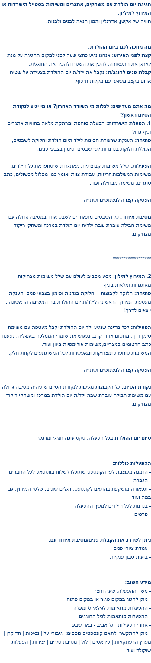 ים הפעלות- הישרדות/המרוץ למיליון