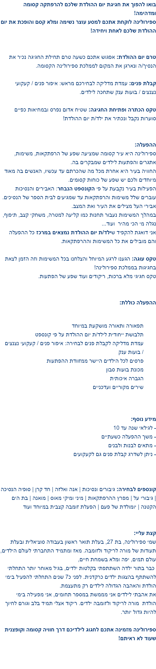 ספירולינה הפעלות - הקסם מתחיל - 073-7583026